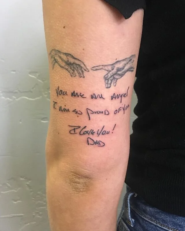 See more ideas about tattoos, memorial tattoos, handwriting tattoos.